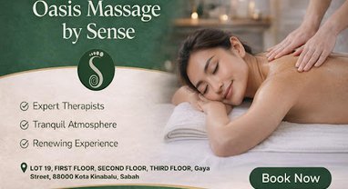Oasis Massage by Sense is your peaceful escape in the heart of Gaya Street, Kota Kinabalu. Step into a calming space that awakens all five senses through soothing music, expert touch, aromatherapy scents, serene interiors, and a comforting cup of ginger tea. Our professional therapists offer full body massage, aromatherapy, hot stone therapy, foot reflexology, and couple packages designed to relieve stress and restore balance. Experience one of the best massage and spa brand in Kota Kinabalu — where relaxation meets renewal.